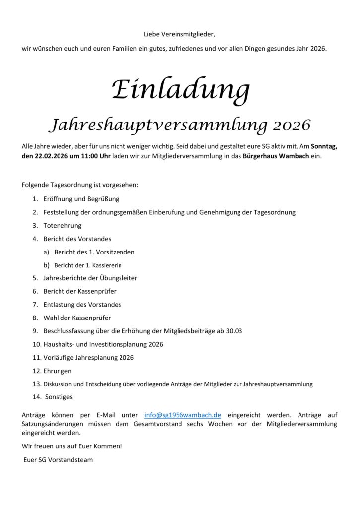 Herzlich willkommen bei der Sportgemeinschaft 1956 Wambach e.V.
